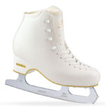 Элегантность в деталях: цвет слоновой кости, позолоченная окантовка каблука, атласные шнурки — вы будете блистать даже на тренировочном катке.