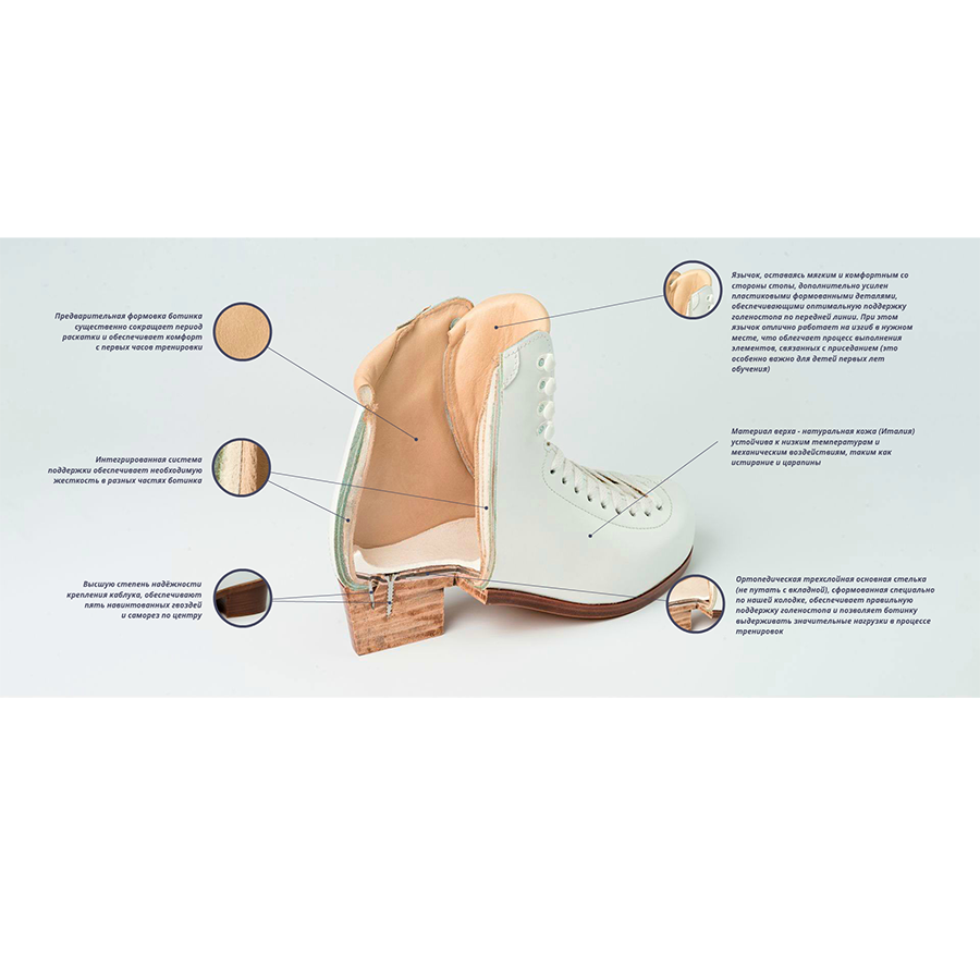 Этот комплект стал для тысячи фигуристов начального уровня прекрасной заменой популярных коньков Wifa Prima Set. Ботинки ISG “Axel” специально разработаны с учетом всех анатомических особенностей строения именно детской ноги.