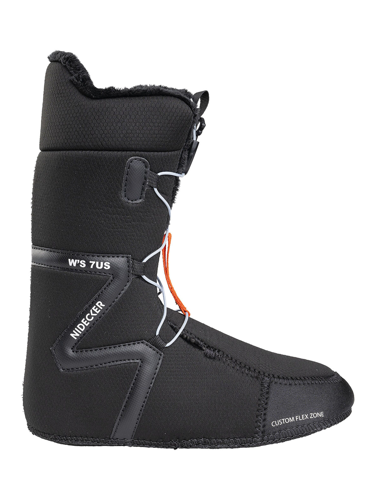 - ASYM 3F – ассиметричная конструкция ботинка идеально сочетается со стрепами креплений Nidecker и Flow, что исключает чрезмерное давление на стопу.