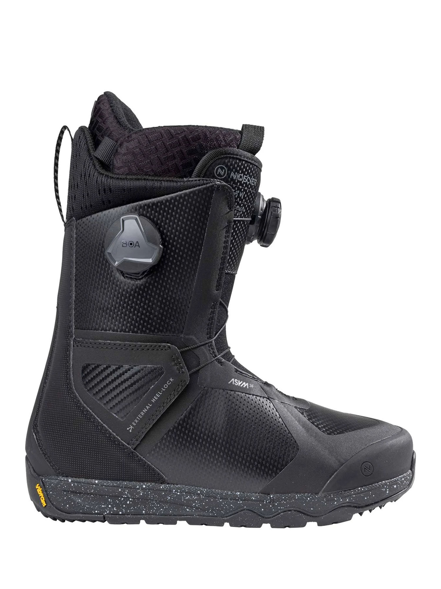 - ASYM 3F – ассиметричная конструкция ботинка идеально сочетается со стрепами креплений Nidecker и Flow, что исключает чрезмерное давление на стопу.
