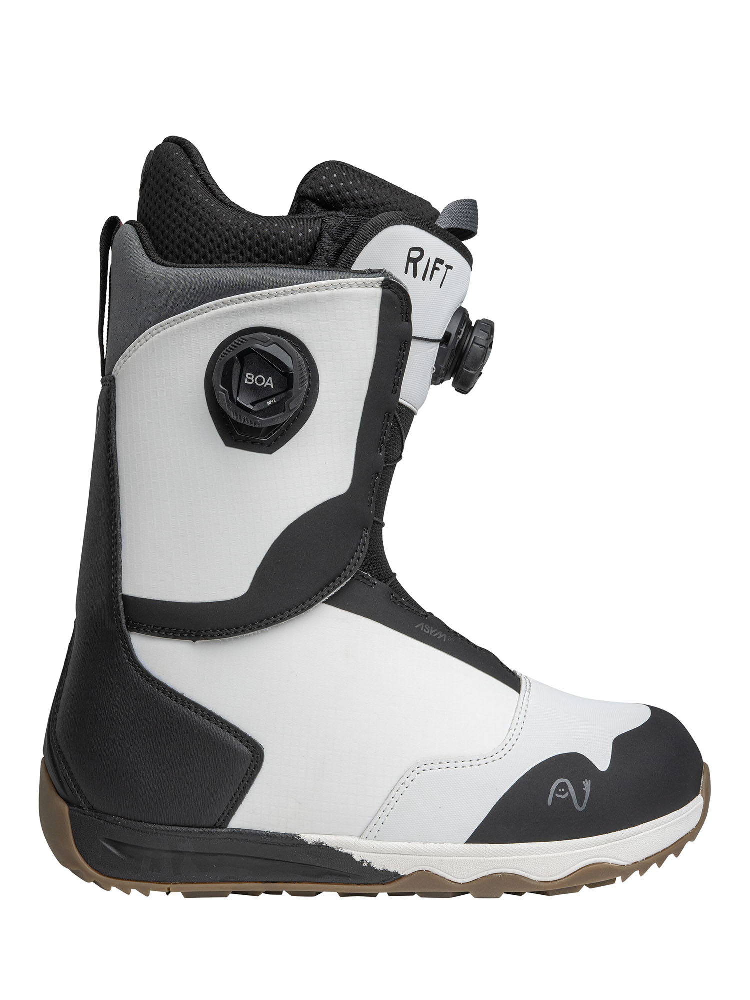 - ASYM 3F – ассиметричная конструкция ботинка идеально сочетается со стрепами креплений Nidecker и Flow, что исключает чрезмерное давление на стопу.